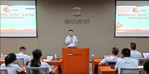 隨后,公司黨委委員陳達(dá)偉同志詳細(xì)介紹了“紅先鋒”黨建品牌的內(nèi)涵、主要措施和實(shí)施要求等內(nèi)容。他指出,“紅”是指打造紅色基因,讓黨建與企業(yè)發(fā)展同頻共振、互促共進(jìn),實(shí)現(xiàn)“黨建強(qiáng)、發(fā)展強(qiáng)”的目標(biāo);“先鋒”是代表行業(yè)特性,代表公司從事的是先進(jìn)制造業(yè),代表組織及隊(duì)伍特色,代表工作重點(diǎn),鼓勵及倡導(dǎo)黨員、骨干和積極分子在攻堅(jiān)克難方面主動發(fā)揮“先鋒”帶頭作用。同時(shí),他從開展“立體學(xué)習(xí)”、打造“黨建+”體系工程、建立“三亮兩創(chuàng)”機(jī)制、實(shí)施“聚力行動”和加強(qiáng)宣傳陣地建設(shè)等5大方面詳細(xì)闡述品牌實(shí)施具體措施和要求,通過一系列創(chuàng)新舉措和扎實(shí)工作,努力將“紅先鋒”打造成為具有鮮明特色、廣泛影響力的福達(dá)黨建品牌。