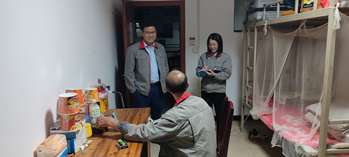 為進一步加強對職工的關(guān)心關(guān)懷,陳達偉走訪員工宿舍,與職工面對面交流,詢問了解大家的生活起居、工作情況以及存在的困難,“零距離”傾聽職工心聲。