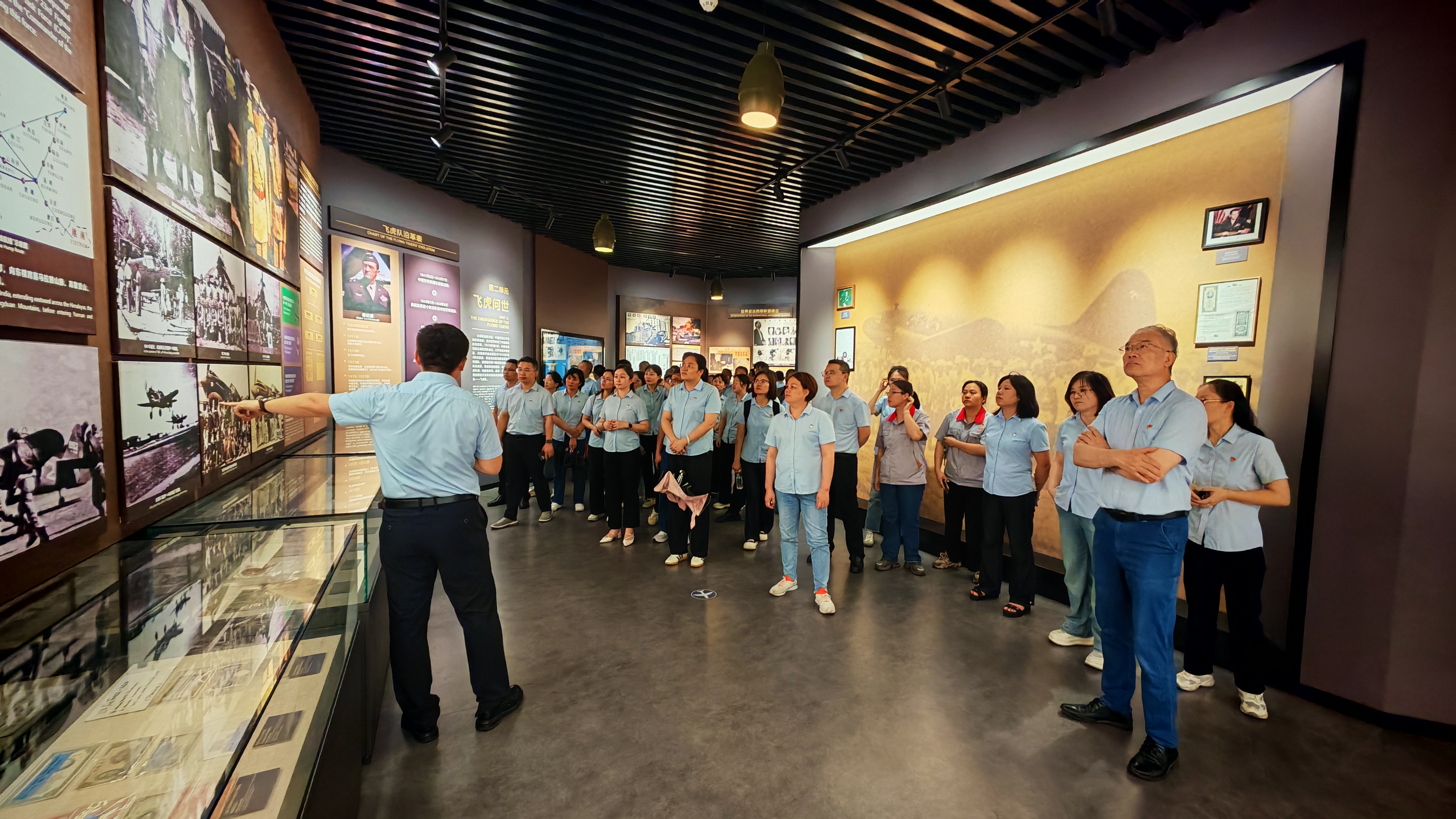 活動中,黨員們懷著崇敬的心情,認(rèn)真觀摩了飛虎隊紀(jì)念館內(nèi)陳列的作戰(zhàn)遺物、歷史照片等珍貴史料,并在飛機(jī)館瞻仰了曾翱翔于抗戰(zhàn)烽火的C-47運(yùn)輸機(jī)。一件件實物、一幅幅影像,無聲訴說著那段血與火的歲月,讓同志們身臨其境地感受到飛虎隊將士們臨危不懼、視死如歸、勇往直前的英雄氣概。
